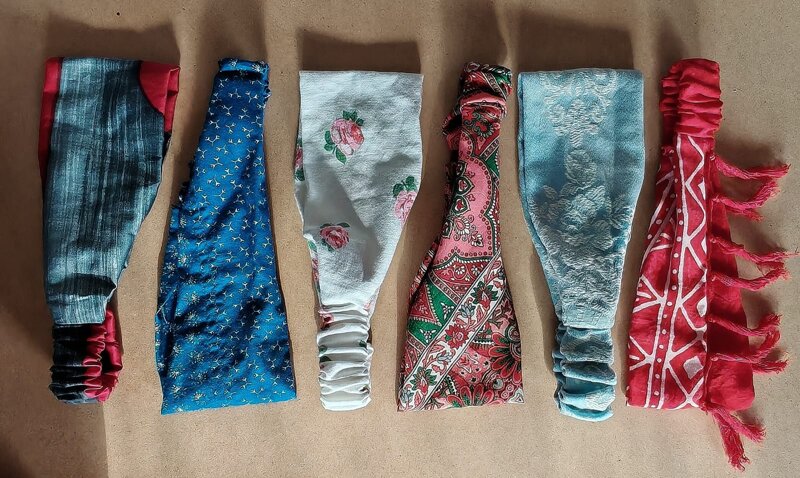 Fasce per capelli con elastico, circonferenza da 50 a 60 cm circa, interamente realizzate con materiale di riciclo